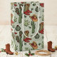 This festive western cowboy Christmas gift bag features a pattern of hand-drawn western illustrations of a pine wreath with cowboy boots, cowboy hat, holly berries, cacti and vintage xmas ornaments among stars and the hand-written words, "Howdy Christmas".