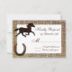 A rustic country wedding reply card featuring a rustic printed burlap design and a horse and a horseshoe. This is a unique wedding announcement for a cowboy wedding or country wedding. Completely customisable with your own details.
