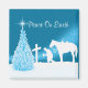 Cowboy praying at the cross in a winter snow scene with his horse ans a tree with star kitchen magnet. Small holiday gifts, party favours and stocking stuffers.