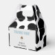 Cowboy Baby Boy Shower Thank You Favour Box. Welcome to our cowboy-themed baby shower collection! This rodeo and wild-west inspired design features a trendy and playful black and white cow print, a cowboy hat and baby blue details. Our collection includes everything you need to throw a Western-themed baby shower, from invitations to party favours. Celebrate the arrival of your little cowboy with our fun and stylish decor. Our collection is perfect for those who love the Western theme, cowboy culture, or the wild west. Whether you're a seasoned rodeo pro or just love the rustic charm, our baby shower collection is sure to impress. Shop now and get ready to party Western-style! Order yours today and saddle up for a wild and wonderful baby shower!