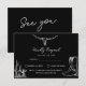 Complete your rustic celebration with this stylish Western wedding RSVP card. Featuring a warm desert brown background with elegant white illustrations of a longhorn skull, cactus plants, and classic cowboy boots, this response card is perfect for a country, ranch, or cowboy-themed wedding.