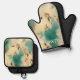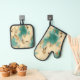 Western Cowgirl Aqua Mint Cream Cowhide Oven Mitt & Pot Holder Set