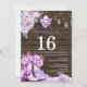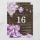 EDITABLE Western Cowgirl Purple Floral Wood Sweet 16 Birthday Invitation