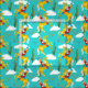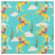 Yeehaw! Add a wild touch to your next sewing project with this fabric and it's wild west pattern. A brightly coloured cowgirl and horse, lassos, cacti, horseshoes and clouds are set against a bright blue background in this delightfully campy western print.