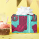 Fuchsia red cowboy boots and hat printed on FAUX turquoise leather with Sweet !6 text.