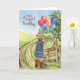 This adorable birthday card is for the little girl who loves country western and is having her seventh birthday. Sweet little cowgirl filly holding balloons as she walks on a country lane.