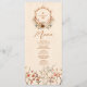 Adorned with vibrant bohemian floral patterns and featuring a crest design inspired by traditional Western emblems, this menu card captivates with its unique blend of rustic and bohemian elements. Each detail reflects the laid-back spirit and free-spirited allure of your wedding, setting the stage for a culinary journey that delights the senses.