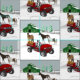 Western Farm Horse Ranch Red ATV Dog and Barn Fabric