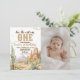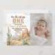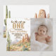A western-themed first birthday photo invitation featuring a desert landscape, cacti, rope accents, and rustic typography paired with a customizable baby photo. Ideal for a “How the West Was One” celebration and perfect for western, cowboy, or country-inspired first birthday parties.