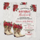 Western Hoedown Rustic Cowgirl Red Floral Birthday Invitation