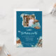 This customizable invitation features a western horse watercolor design with a navy background, turquoise accents, and classic cowgirl styling. Designed with a photo area, it allows you to add your own image to create a personalized invitation for a horse birthday party.