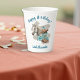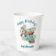 These paper cups feature a western horse watercolor design with soft floral accents and classic cowgirl elements, including cowgirl boots and a cowgirl hat. The rich navy background paired with turquoise and neutral tones creates an elegant western look that’s perfect for a horse birthday party.