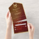 Western Horseshoe Heart Burgundy & Gold No Dinner All In One Invitation