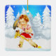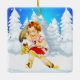 Western Little Cowgirl On Stick Horse Winter Scene Ceramic Ornament