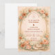 A romantic blush and peach floral design framed by a soft watercolor arch of roses, garden blooms, and airy pampas accents. Warm neutrals and muted sage greenery create an elegant, timeless aesthetic with a subtle western touch from the hat and rope detail. The composition feels refined yet natural — perfect for a boho western celebration, ranch wedding, or romantic garden ceremony. Fully customizable with your names and event details.
