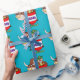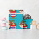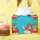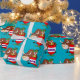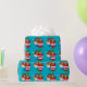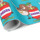 Cartoon rodeo clown inside of a barrel and a bull behind him gift wrapping paper.
