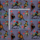 cowgirls on horses in different actions running turning Denim print background
