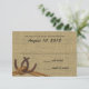 "Tie the Knot" country style with this not so traditional wedding reply card. Two horseshoes tied within the rope knot over burlap. Completely printed invitation. Burlap and decorations are printed and not attached.