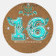 Western Rustic Brown Faux Leather Number 16 Classic Round Sticker