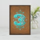 Western Rustic Brown & Turquoise THREE 3 3rd Party Invitation