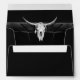 Western country black and white vintage antique cowboy style custom wedding invitation, thank you and greeting card envelopes. Rustic bull cow skull personalised modern vintage antique farmhouse inspired texture design. Old wild west cowboy style party supplies. Cool, awesome unique, trendy, farm animal design. Image copyright Marg Seregelyi Photography.