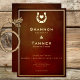 Saddle up for a celebration like no other with our stunning rustic brown burgundy leather-look invitation. Inspired by the rugged charm of the Wild West, this invitation is perfect for couples looking to add a touch of frontier flair to their special day. Each invitation features a real gold foil floating frame and gold foil text, adding a touch of luxury and elegance to your wedding announcement. At the heart of it all, a gleaming gold foil horseshoe and heart centred at the top symbolises luck and prosperity, setting the tone for a lifetime of happiness together. Capture the essence of the Old West and invite your guests to join you on this adventure of love and commitment. Whether you're tying the knot in a barn, on a ranch, or under the open sky, these invitations will set the stage for an unforgettable celebration. Created by Simply Farmhouse Press.