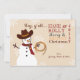 A western-theme holiday card featuring a snowman dressed as a cowboy with falling snowflakes on a tan background. The card is easy to customise with your wording, font, font colour, paper shape options and choice of six paper types. Not exactly what you're looking for? All our products can be custom designed to meet your needs at no extra charge. Simply contact us at askpixieprints@aol.com. Coordinating products available: Just ask us!