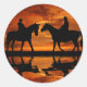 Western Sunset Horseback Riding cowboy silhouette Classic Round Sticker