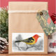 Vintage drawing of a Western Tanager bird with a red head and yellow breast on a grey background. This coloured drawing of the Western Tanager is from the old fashioned Arm and Hammer Baking Soda advertising card series.