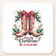 Western Theme Howdy Christmas Cowgirl Boots Square Paper Coaster