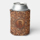 Western Tooled Leather Print Custom Initial Can Cooler