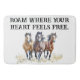 Step into the spirit of the untamed West with this stunning bath mat, featuring a trio of galloping mustangs in soft watercolor hues. Their powerful strides and flowing manes capture the energy and grace of the open plains, while the phrase "Roam Where Your Heart Feels Free" stands bold in an Old West saloon-style font, adding a vintage frontier touch.