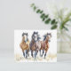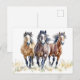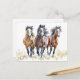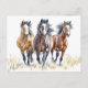 Send a piece of untamed beauty with the Western Wild & Free Mustangs Postcard. This stunning design features a watercolor illustration of three powerful mustangs galloping through an open field, their flowing manes and strong strides capturing the essence of freedom and strength. The soft, earthy tones of the grass contrast beautifully against the mottled white background, creating a sense of movement and energy while keeping the focus on these majestic creatures.