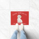Adorable Christmas doormat featuring a Westie Dog wearing a santa hat on a festive red background.