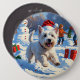 Westie Running in Snow with Christmas Hat 6 Cm Round Badge