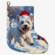 Westie Running in Snow with Christmas Hat Large Christmas Stocking