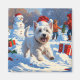 A cheerful West Highland White Terrier runs happily through the snowy winter scene, wearing a festive red Christmas hat. This delightful design highlights the breed’s fluffy white coat, playful energy, and affectionate nature while capturing the warmth and magic of the holiday season. A joyful winter moment full of festive charm.