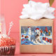 A cheerful West Highland White Terrier runs happily through the snowy winter scene, wearing a festive red Christmas hat. This delightful design highlights the breed’s fluffy white coat, playful energy, and affectionate nature while capturing the warmth and magic of the holiday season. A joyful winter moment full of festive charm.