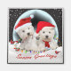 Westies Christmas design featuring two Santa pals dressed in santa hats is available on gifts for the holidays.