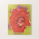 My original artwork is featured on this floral puzzle, consisting of my photo of a red-pink rose, styled with a wet watercolor painterly technique for an artsy appearance.