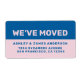 We've moved! Moving announcement return address labels: let your friends and family know about your new address with these chic, modern and simple return address labels. Simply add your names and address in blue stylish typography on a pink background. Exclusively designed for you by Happy Dolphin Studio. If you need any help or matching products please contact us through our store chat. We're happy to help you move in style!