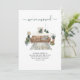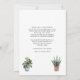 This moving announcement card is modern and features quirky, boho plants, a couch, and a cat relaxing on it. Check out the rug and the wall art and vintage overhead lamps. Something your recipients would smile about