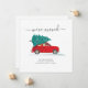 We've Moved Christmas Holiday Moving Announcement featuring a red car and Christmas tree with script and popular typography on white background.