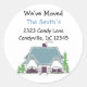 A cosy house with designs. A blue roof and a purple front door. A fun way to share your new address. Customise with your family name and address as desired.