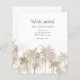 Celebrate your new home while letting them know of your plans and new address with this cute budget modern watercolor palm tree moving announcement card template that you can easily customise.