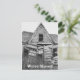 Moving announcement postcard shows a black and white photo of a ramshackle, dilapidated, abandoned, old house. The front door, broken windows, and pitched roof are shown. The back of the card includes the new address and contact information. Customise the text to announce your move.