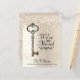 Announce you've moved to your new home with this chic moving postcard. This elegant template design features a key accented by a gem on a background of champagne faux dripping glitter. The back of the card has a matching background with a message to personalise. Perfect for newlyweds and families. Designed by Susan Coffey.