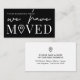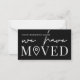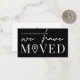 Let your customers, employees and delivery providers about your new office address with this minimalist We Have Moved Business Note Card Design. Featuring black and white design with trendy fonts, space for your business name and new address, this modern we've moved business card is an easy way to update clients about your address change.