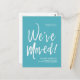 A minimal solid Sapphire Blue and white script-style moving announcement postcard. It features a large script text of the words "We've Moved" followed by your address information below it. Many individual elements of the invite card are unlocked so feel free to change or add any details necessary by using the customisation function.