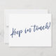Keep your friends and family up to date with your new address using these simple, elegant announcement cards. You can insert them into your wedding-themed mailings or share them in person, as you see fit. Whether you're a newlywed or just want a unique design for letting your tribe know how to find you, this card is versatile enough for anyone. It features pretty typography graphics that read "We've Moved" on the front and "Keep in touch!" on the back, using a modern, casual, handwritten script font. Use the template fields to add all your own details to personalise this design for your own use. If you'd like to change the pretty, simple sans-serif font I used for the editable text, or wish to move some lines elsewhere, click the link to customise the card further. The navy blue type was placed over an editable white background; you can change the background to any colour you wish. // 90 //